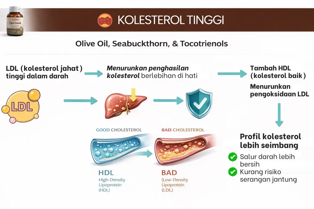 Diperkaya Olive Oil, Tocotrienols & Seabuckthorn untuk sokongan metabolik & Jantung.