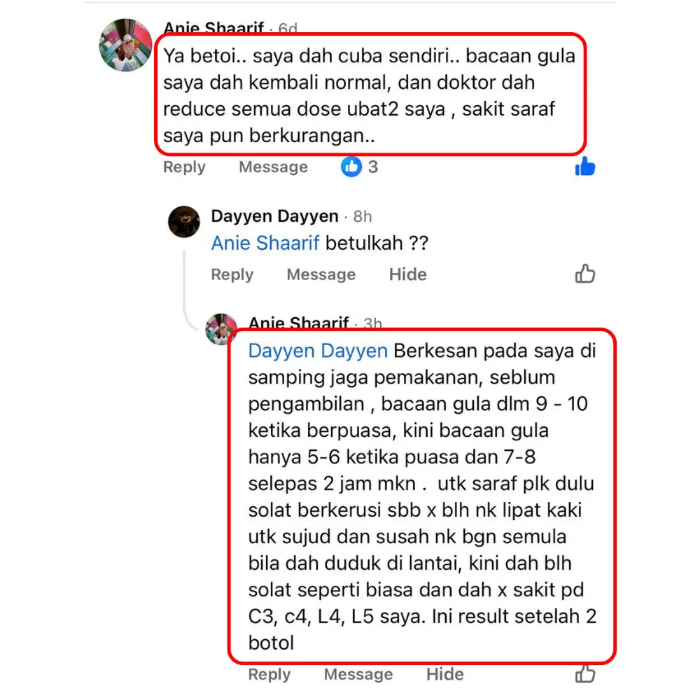 "Baru hari ke-3 dah dapat rasa kesan baik Olive Guard+. Sakit-sakit badan kurang, badan makin bertenaga."